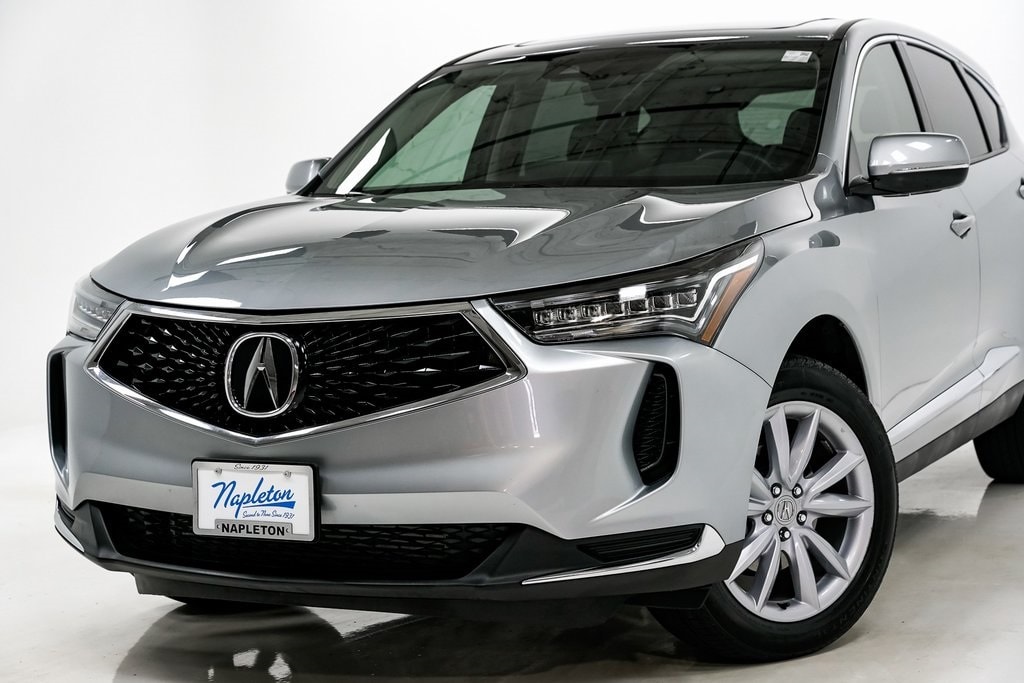 This RDX is well equipped with AWD, 4-Wheel Disc Brakes, 4.17 Axle Ratio, 9 Speakers, ABS brakes, Air Conditioning, Alloy wheels, AM/FM radio: SiriusXM, Apple CarPlay/Android Auto, Auto High-beam Headlights, Auto-dimming Rear-View mirror, Automatic temperature control, Brake assist, Bumpers: body-color, Compass, Delay-off headlights, Driver door bin, Driver vanity mirror, Dual front impact airbags, Dual front side impact airbags, Electronic Stability Control, Emergency communication system: AcuraLink, Exterior Parking Camera Rear, Four wheel independent suspension, Front anti-roll bar, Front Bucket Seats, Front Center Armrest, Front dual zone A/C, Front reading lights, Fully automatic headlights, Garage door transmitter: HomeLink, Heated door mirrors, Heated front seats, Heated Front Sport Seats, Illuminated entry, Knee airbag, Lane departure: Lane Keeping Assist System (LKAS) active, Leatherette-Trimmed Interior, Low tire pressure warning, Memory seat, Occupant sensing airbag, Outside temperature display, Overhead airbag, Overhead console, Panic alarm, Passenger door bin, Passenger vanity mirror, Power door mirrors, Power driver seat, Power Liftgate, Power moonroof, Power passenger seat, Power steering, Power windows, Premium Audio System, Radio data system, Rear anti-roll bar, Rear reading lights, Rear seat center armrest, Rear window defroster, Rear window wiper, Remote keyless entry, Security system, Speed control, Speed-sensing steering, Split folding rear seat, Spoiler, Steering wheel mounted audio controls, Tachometer, Telescoping steering wheel, Tilt steering wheel, Traction control, Trip computer, Turn signal indicator mirrors, Variably intermittent wipers, and Wheels: 19" x 8.0J Sparkle Silver Multi-Spoke.