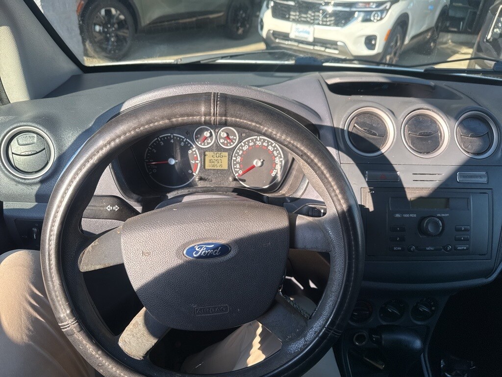 This Transit Connect is well equipped with Order Code 100A, 15" Steel Wheels w/6-Spoke Wheel Covers, 2 Speakers, 3.96 Axle Ratio, ABS brakes, Air Conditioning, AM/FM radio, AM/FM Stereo w/2 Speakers, Bodyside moldings, Driver & Front Passenger Cloth Buckets, Driver door bin, Driver's Seat Mounted Armrest, Dual front impact airbags, Dual front side impact airbags, Front anti-roll bar, Front Bucket Seats, Front wheel independent suspension, Low tire pressure warning, Occupant sensing airbag, Overhead console, Passenger door bin, Passenger vanity mirror, Power steering, Rear anti-roll bar, Rear fog lights, Tachometer, Telescoping steering wheel, Tilt steering wheel, and Variably intermittent wipers.