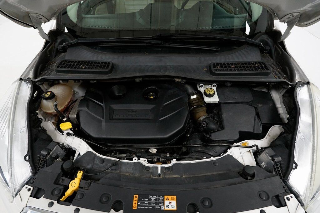 This Escape is well equipped with Equipment Group 300A, Panoramic Vista Roof, Power Liftgate, Rear Parking Sensors, SYNC 3 Communications & Entertainment System, 10 Speakers, 3.51 Axle Ratio, 4-Wheel Disc Brakes, ABS brakes, Air Conditioning, Alloy wheels, AM/FM radio: SiriusXM, Auto-dimming Rear-View mirror, Automatic temperature control, Brake assist, Bumpers: body-color, CD player, Compass, Delay-off headlights, Driver door bin, Driver vanity mirror, Dual front impact airbags, Dual front side impact airbags, Electronic Stability Control, Emergency communication system: SYNC 3 911 Assist, Exterior Parking Camera Rear, Four wheel independent suspension, Front anti-roll bar, Front Bucket Seats, Front Center Armrest, Front dual zone A/C, Front fog lights, Front reading lights, Fully automatic headlights, Garage door transmitter, Heated door mirrors, Heated front seats, Heated Leather-Trimmed Buckets w/60/40 Rear Seat, Illuminated entry, Knee airbag, Leather Shift Knob, Low tire pressure warning, Memory seat, Occupant sensing airbag, Outside temperature display, Overhead airbag, Overhead console, Panic alarm, Passenger door bin, Passenger vanity mirror, Power door mirrors, Power driver seat, Power passenger seat, Power steering, Power windows, Radio data system, Radio: AM/FM Single CD/MP3, Rear anti-roll bar, Rear reading lights, Rear seat center armrest, Rear window defroster, Rear window wiper, Remote keyless entry, Roof rack: rails only, Security system, Speed control, Speed-sensing steering, Split folding rear seat, Steering wheel mounted audio controls, Tachometer, Telescoping steering wheel, Tilt steering wheel, Traction control, Trip computer, Turn signal indicator mirrors, Variably intermittent wipers, and Wheels: 18" Sparkle Silver-Painted Aluminum.