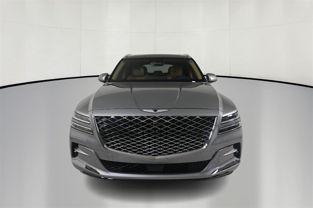 This GV80 is well equipped with Advanced Package (3-Zone Climate Control, Blind-Spot View Monitor, Ergo Motion Driver Seat, Head-Up Display, Heated 2nd Row Seats, Option Group 06, Power Cushion Extension & Bolster, Radio: AM/FM/SiriusXM/HD Lexicon Prem Audio System, Remote Smart Parking Assist, Reverse Parking Collision-Avoidance Assist, and Surround View Monitor), 12 Speakers, 3.909 Axle Ratio, 4-Wheel Disc Brakes, ABS brakes, Adaptive suspension, Air Conditioning, Alloy wheels, AM/FM radio: SiriusXM, Android Auto & Apple CarPlay, Anti-whiplash front head restraints, Auto High-beam Headlights, Auto tilt-away steering wheel, Auto-dimming door mirrors, Auto-dimming Rear-View mirror, Automatic temperature control, Brake assist, Bumpers: body-color, Compass, Delay-off headlights, Driver door bin, Driver vanity mirror, Dual front impact airbags, Dual front side impact airbags, Electronic Stability Control, Emergency communication system: Genesis Connected Services, Exterior Parking Camera Rear, Four wheel independent suspension, Front anti-roll bar, Front Bucket Seats, Front Center Armrest, Front dual zone A/C, Front reading lights, Fully automatic headlights, Garage door transmitter: HomeLink, Genuine wood console insert, Genuine wood dashboard insert, Genuine wood door panel insert, Heated & Ventilated Front Bucket Seats, Heated door mirrors, Heated front seats, Heated steering wheel, Illuminated entry, Knee airbag, Leather Seating Surfaces, Leather steering wheel, Leatherette Seating Surfaces, Low tire pressure warning, Memory seat, Nappa Leather Seating Surfaces, Navigation System, Occupant sensing airbag, Outside temperature display, Overhead airbag, Overhead console, Panic alarm, Passenger door bin, Passenger vanity mirror, Power door mirrors, Power driver seat, Power Folding 3rd Row Seat, Power Liftgate, Power moonroof, Power passenger seat, Power steering, Power windows, Radio data system, Radio:14.5" Navigation System w/AM/FM/HD Radio, Rain sensing wipers, Rear air conditioning, Rear anti-roll bar, Rear Bumper Applique, Rear reading lights, Rear seat center armrest, Rear side impact airbag, Rear window defroster, Rear window wiper, Remote keyless entry, Security system, Speed control, Speed-sensing steering, Speed-Sensitive Wipers, Split folding rear seat, Spoiler, Steering wheel memory, Steering wheel mounted audio controls, Tachometer, Telescoping steering wheel, Tilt steering wheel, Traction control, Trip computer, Turn signal indicator mirrors, Variably intermittent wipers, Ventilated front seats, and Wheels: 20" x 8.5J Medium Metallic Gray Alloy.