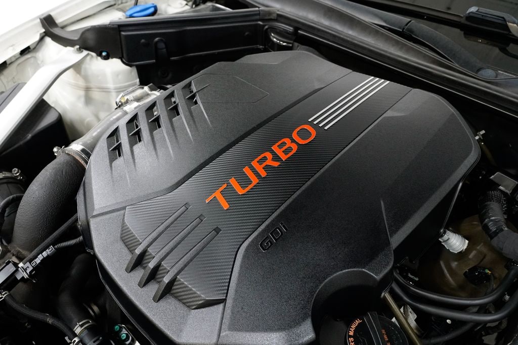 Distinctive exterior styling cues, including the bold front grille, sleek profile, and integrated rear spoiler, give the Stinger a commanding presence on the road. The 19-inch alloy wheels and red brake calipers add a touch of sport-inspired flair, while the power moonroof floods the cabin with natural light.