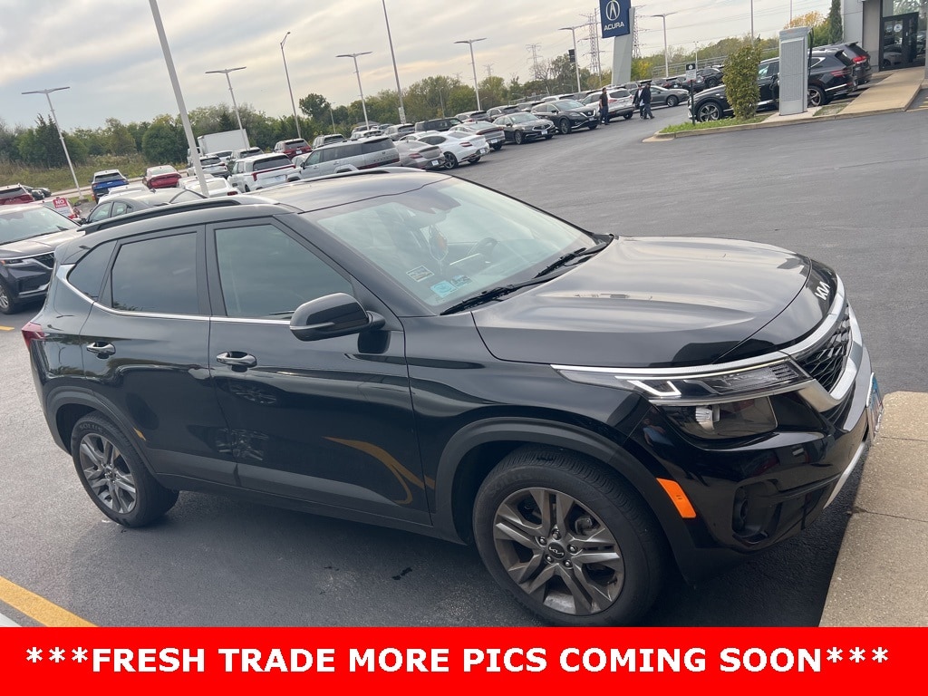 This Seltos is well equipped with 4-Wheel Disc Brakes, 6 Speakers, 6.052 Axle Ratio, ABS brakes, Air Conditioning, Alloy wheels, AM/FM radio, Apple CarPlay & Android Auto, Auto High-beam Headlights, Automatic temperature control, Brake assist, Bumpers: body-color, Carpet Floor Mats, Cloth & Sofino Premium Leatherette Seat Trim, Delay-off headlights, Driver door bin, Driver vanity mirror, Dual front impact airbags, Dual front side impact airbags, Electronic Stability Control, Emergency communication system: 911 Connect, Exterior Parking Camera Rear, Front anti-roll bar, Front Bucket Seats, Front Center Armrest, Front fog lights, Front reading lights, Front wheel independent suspension, Fully automatic headlights, Heated door mirrors, Illuminated entry, Leather Shift Knob, Low tire pressure warning, Occupant sensing airbag, Outside temperature display, Overhead airbag, Overhead console, Panic alarm, Passenger door bin, Passenger vanity mirror, Power door mirrors, Power steering, Power windows, Radio: AM/FM/MP3 Display Audio, Rear seat center armrest, Rear window defroster, Rear window wiper, Remote keyless entry, Security system, Speed control, Speed-sensing steering, Split folding rear seat, Spoiler, Steering wheel mounted audio controls, Tachometer, Telescoping steering wheel, Tilt steering wheel, Traction control, Trip computer, Turn signal indicator mirrors, Variably intermittent wipers, and Wheels: 17" Alloy w/Dark Gray Finish.