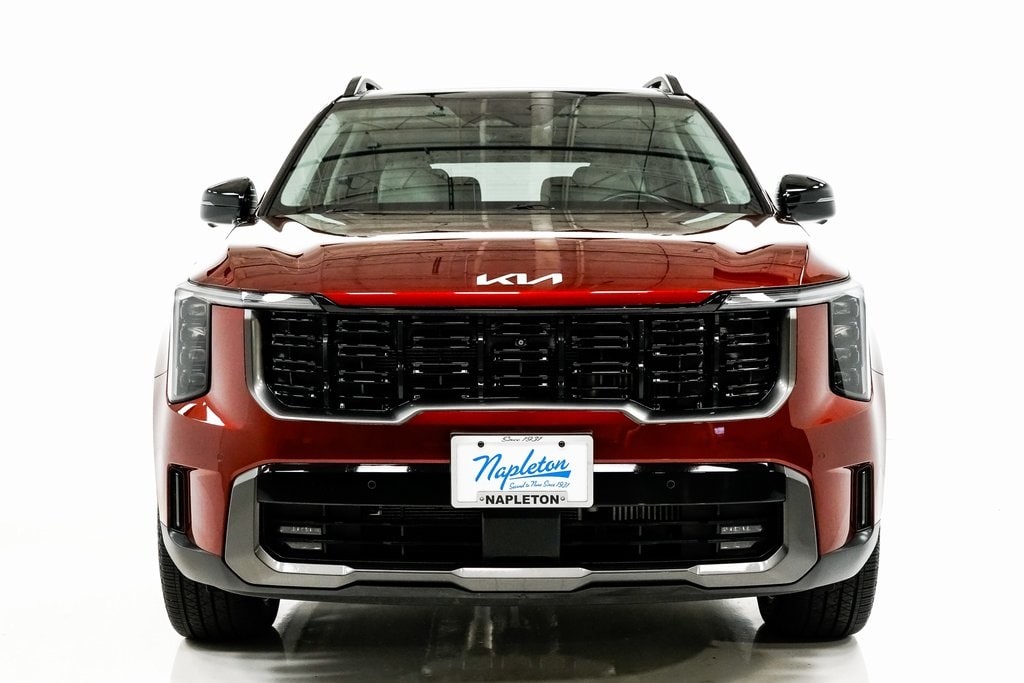 This Sorento is well equipped with AWD, 3.316 Axle Ratio, 3rd row seats: split-bench, 4-Wheel Disc Brakes, 6 Speakers, ABS brakes, Air Conditioning, Alloy wheels, AM/FM radio: SiriusXM, Apple CarPlay & Android Auto, Auto High-beam Headlights, Auto-dimming Rear-View mirror, Automatic temperature control, Brake assist, Bumpers: body-color, Carpeted Floor Mats, Delay-off headlights, Driver door bin, Driver vanity mirror, Dual front impact airbags, Dual front side impact airbags, Electronic Stability Control, Emergency communication system: 911 Connect, Exterior Parking Camera Rear, Four wheel independent suspension, Front anti-roll bar, Front Bucket Seats, Front Center Armrest, Front dual zone A/C, Front fog lights, Front reading lights, Fully automatic headlights, Heated & Ventilated Front Bucket Seats, Heated door mirrors, Heated front seats, Illuminated entry, Illuminated Hatch Sill Plate, Knee airbag, Leather steering wheel, Low tire pressure warning, Navigation System, Occupant sensing airbag, Outside temperature display, Overhead airbag, Overhead console, Panic alarm, Passenger door bin, Passenger vanity mirror, Power door mirrors, Power driver seat, Power Liftgate, Power moonroof, Power passenger seat, Power steering, Power windows, Radio data system, Radio: AM/FM Audio System, Rain sensing wipers, Rear anti-roll bar, Rear reading lights, Rear side impact airbag, Rear window defroster, Rear window wiper, Remote keyless entry, Security system, Smart Key w/ Push Button and Remote Start, Speed control, Speed-sensing steering, Split folding rear seat, Spoiler, Steering wheel mounted audio controls, SynTex Artificial Leather Seat Trim, Tachometer, Telescoping steering wheel, Textured Rear Bumper Applique, Tilt steering wheel, Traction control, Trip computer, Turn signal indicator mirrors, Variably intermittent wipers, Ventilated front seats, and Wheels: 8.5J x 20" Gloss Black X-Line Alloy.