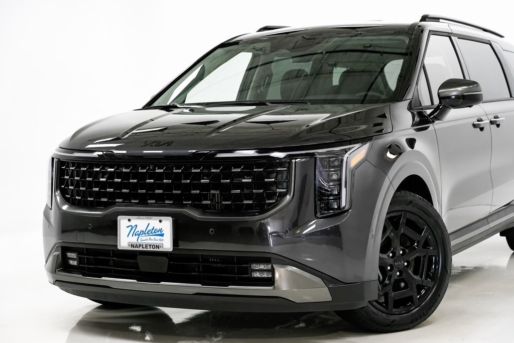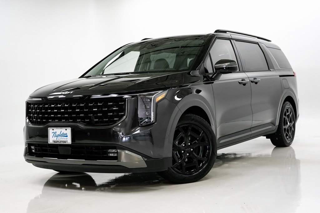 This Carnival Hybrid is well equipped with SX Prestige Seat Package (2nd Row Laminated Windows, Ambient Lighting, Heated/Ventilated 2nd Row Power VIP Lounge Seats, and High Glossy Interior Trim), 1.6L I4 DGI Hybrid Turbocharged DOHC 16V LEV3-SULEV30, 12 Speakers, 3rd row seats: split-bench, 4-Wheel Disc Brakes, ABS brakes, Air Conditioning, Alloy wheels, AM/FM radio: SiriusXM, Apple CarPlay & Android Auto, Auto High-beam Headlights, Auto-dimming Rear-View mirror, Automatic temperature control, Brake assist, Bumpers: body-color, Compass, Delay-off headlights, Driver door bin, Driver vanity mirror, Dual front impact airbags, Dual front side impact airbags, Electronic Stability Control, Emergency communication system, Exterior Parking Camera Rear, Four wheel independent suspension, Front anti-roll bar, Front Bucket Seats, Front Center Armrest, Front dual zone A/C, Front fog lights, Front reading lights, Fully automatic headlights, Garage door transmitter: HomeLink, Heads-Up Display, Heated & Ventilated Front Bucket Seats, Heated door mirrors, Heated front seats, Heated steering wheel, Illuminated entry, Knee airbag, Leather Seat Trim, Leather Shift Knob, Leather steering wheel, Low tire pressure warning, Luxury Carpeted Floor Mats, Memory seat, Navigation system: AVN 5.0 Navigation System, Occupant sensing airbag, Outside temperature display, Overhead airbag, Overhead console, Panic alarm, Passenger door bin, Passenger vanity mirror, Power 2nd-Row Moonroof, Power door mirrors, Power driver seat, Power Liftgate, Power moonroof, Power passenger seat, Power steering, Power windows, Radio: AVN 5.0 Navigation System w/SiriusXM, Rain sensing wipers, Rear air conditioning, Rear anti-roll bar, Rear reading lights, Rear window defroster, Rear window wiper, Reclining 3rd row seat, Remote keyless entry, Security system, Speed control, Speed-sensing steering, Split folding rear seat, Spoiler, Steering wheel mounted audio controls, Tachometer, Telescoping steering wheel, Tilt steering wheel, Traction control, Trailer Prewire Harness, Trip computer, Turn signal indicator mirrors, Variably intermittent wipers, Ventilated front seats, and Wheels: 7.5J x 19" Alloy Dark Edition.