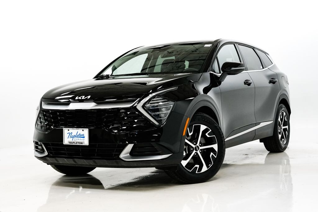 This Sportage is well equipped with Apple CarPlay & Android Auto, Front dual zone A/C, Heated Front Bucket Seats, 4-Wheel Disc Brakes, 6 Speakers, ABS brakes, Air Conditioning, Alloy wheels, AM/FM radio: SiriusXM, Auto High-beam Headlights, Automatic temperature control, Brake assist, Bumpers: body-color, Carpeted Floor Mats, Compass, Delay-off headlights, Driver door bin, Driver vanity mirror, Dual front impact airbags, Dual front side impact airbags, Electronic Stability Control, Emergency communication system, Four wheel independent suspension, Front anti-roll bar, Front Bucket Seats, Front Center Armrest, Fully automatic headlights, Heated door mirrors, Heated front seats, Illuminated entry, Leather Shift Knob, Leather steering wheel, Leatherette Seat Trim, Low tire pressure warning, Navigation System, Occupant sensing airbag, Outside temperature display, Overhead airbag, Overhead console, Panic alarm, Passenger door bin, Passenger vanity mirror, Power door mirrors, Power driver seat, Power steering, Power windows, Radio: AM/FM/HD Audio System, Rain sensing wipers, Rear anti-roll bar, Rear seat center armrest, Rear side impact airbag, Rear window defroster, Rear window wiper, Remote keyless entry, Security system, Speed control, Speed-sensing steering, Split folding rear seat, Spoiler, Steering wheel mounted audio controls, Tachometer, Telescoping steering wheel, Tilt steering wheel, Traction control, Trip computer, Turn signal indicator mirrors, Variably intermittent wipers, and Wheels: 18" x 7.5J Machined Alloy.