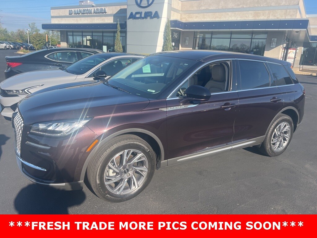 This Lincoln Corsair is well equipped with Equipment Group 100A, 10 Speakers, 18" Bright Machined Aluminum Wheels, 3.81 Axle Ratio, 4-Wheel Disc Brakes, ABS brakes, Air Conditioning, All-Weather Floor Liners, Alloy wheels, AM/FM radio: SiriusXM, Auto High-beam Headlights, Auto-dimming Rear-View mirror, Automatic temperature control, Brake assist, Bumpers: body-color, Cargo Area Protector, Compass, Delay-off headlights, Driver door bin, Driver vanity mirror, Dual front impact airbags, Dual front side impact airbags, Electronic Stability Control, Emergency communication system: SYNC 4 911 Assist, Four wheel independent suspension, Front anti-roll bar, Front Bucket Seats, Front Center Armrest, Front dual zone A/C, Front reading lights, Fully automatic headlights, Heated door mirrors, Heated front seats, Illuminated entry, Knee airbag, Leather steering wheel, Lincoln Premium Audio System Subwoofer Delete, Lincoln Soft Touch Heated Comfort Seats, Low tire pressure warning, Memory seat, Navigation system: Connected Navigation (3-year trial), Occupant sensing airbag, Outside temperature display, Overhead airbag, Overhead console, Panic alarm, Passenger door bin, Passenger vanity mirror, Power door mirrors, Power driver seat, Power Liftgate, Power passenger seat, Power steering, Power windows, Radio data system, Radio: Lincoln Premium Audio System w/MP3, Rear anti-roll bar, Rear Parking Sensors, Rear reading lights, Rear seat center armrest, Rear window defroster, Rear window wiper, Remote keyless entry, Security system, SiriusXM Radio, Speed control, Speed-sensing steering, Speed-Sensitive Wipers, Split folding rear seat, Spoiler, Steering wheel mounted A/C controls, Steering wheel mounted audio controls, SYNC 4 Communications & Entertainment System, Tachometer, Telescoping steering wheel, Tilt steering wheel, Traction control, Trip computer, Variably intermittent wipers, Wheel Lock Kit w/Exposed Lug Nuts, and Wheels: 18" Warm Painted Alloy.
