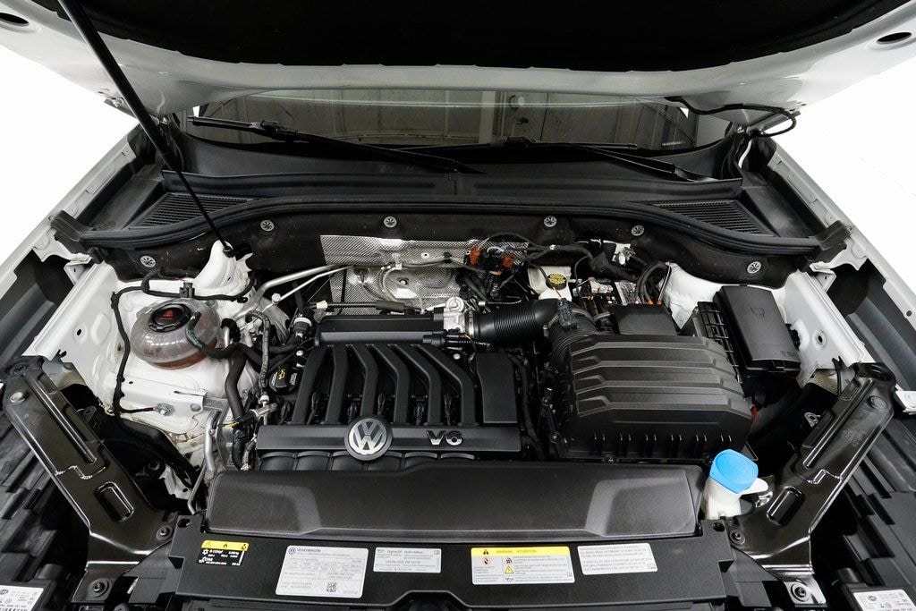 This Atlas Cross Sport is well equipped with Black Wheel Package (Wheels: 20" x 8J 5-Spoke Black Painted Alloy), Panoramic Sunroof Package (Power Tilting & Sliding Panoramic Sunroof), Trailer Hitch Extras, 3.60 Axle Ratio, 4-Wheel Disc Brakes, 6 Speakers, ABS brakes, Air Conditioning, Alloy wheels, AM/FM radio: SiriusXM with 360L, Auto-dimming Rear-View mirror, Automatic temperature control, Brake assist, Bumpers: body-color, Compass, Delay-off headlights, Driver door bin, Driver vanity mirror, Dual front impact airbags, Dual front side impact airbags, Electronic Stability Control, Emergency communication system, Exterior Parking Camera Rear, Four wheel independent suspension, Front anti-roll bar, Front Bucket Seats, Front Center Armrest, Front dual zone A/C, Front fog lights, Front reading lights, Fully automatic headlights, Heated Comfort Front Bucket Seats, Heated door mirrors, Heated front seats, Illuminated entry, Leather Shift Knob, Low tire pressure warning, Occupant sensing airbag, Outside temperature display, Overhead airbag, Overhead console, Panic alarm, Passenger door bin, Passenger vanity mirror, Perforated V-Tex Leatherette Seating Surfaces, Power door mirrors, Power driver seat, Power Liftgate, Power steering, Power windows, Radio data system, Radio: MIB3 Composition Media w/8" Touchscreen, Rain sensing wipers, Rear anti-roll bar, Rear reading lights, Rear seat center armrest, Rear window defroster, Rear window wiper, Remote keyless entry, Roof rack: rails only, Security system, Speed control, Speed-sensing steering, Split folding rear seat, Spoiler, Standard Suspension, Steering wheel mounted audio controls, Tachometer, Telescoping steering wheel, Tilt steering wheel, Traction control, Trip computer, Turn signal indicator mirrors, and Variably intermittent wipers.